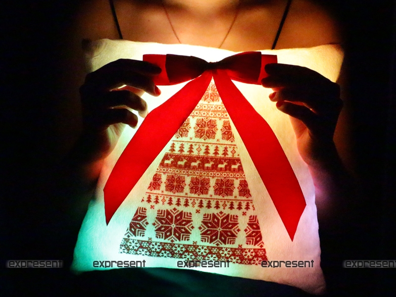 Прекрасный новогодний подарок - светящаяся подушка с рисунком новогодней елочки. Подарит вам праздничное настроение и приятные эмоции, будет очень красиво смотреться в темноте. Выполнена с экологически чистого материала, работает от 2-х батареек ААА, которые тщательно спрятаны внутри подушки. Производятся в Киеве.