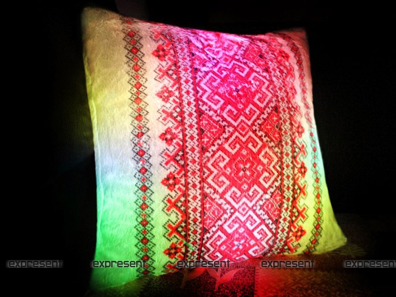Прекрасный подарок каждому украинцу, светящаяся подушка с рисунком вышивки. Такая подушка станем отличным артибутом патриота, будет очень красиво смотреться в темноте. Выполнена с экологически чистого материала, работает от 2-х батареек АА, которые тщательно спрятаны внутри подушки. Производятся в Киеве.