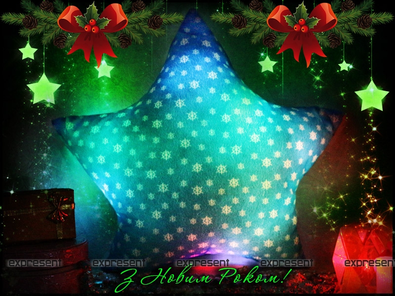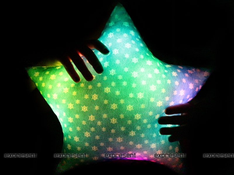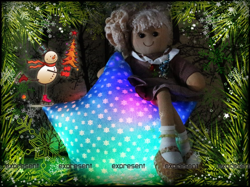 Прекрасный новогодний подарок - светящаяся подушка в форме звездочки с рисунками маленьких снежинок. Подарит вам праздничное настроение и приятные эмоции, будет очень красиво смотреться в темноте. Выполнена с экологически чистого материала, работает от 2-х батареек АА, которые тщательно спрятаны внутри подушки. Производятся в Киеве.
