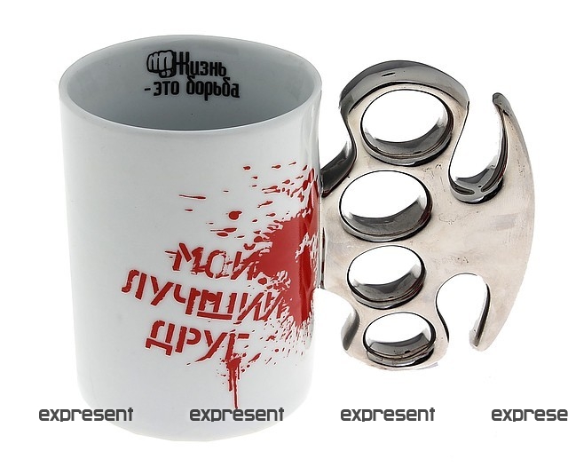Не знаете что подарить своему лучшему другу? Подарите ему такую оригинальную кружку с ручкой в форме кастета и надписью "Мой лучший друг". Он будет несомненно рад и будет вспоминать вас при каждом исползовании этой прикольной кружки.
