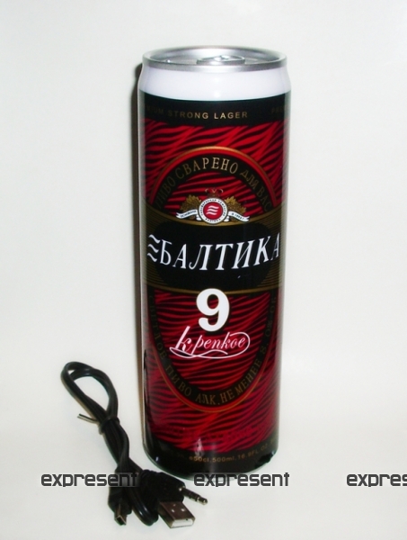 - мини акустическая система в виде баночки пива "Балтика 9" с радиоприемником и МР3 плеером;