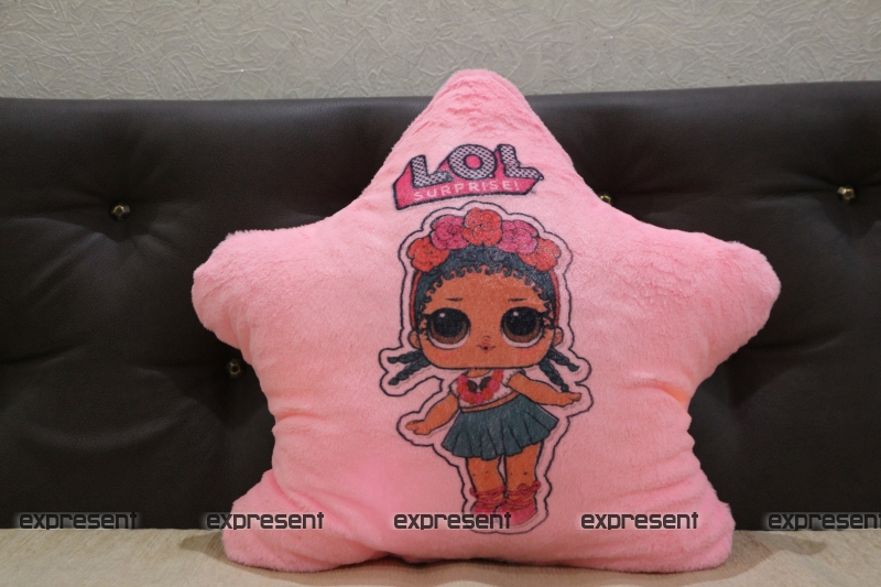 Любителям и поклонникам кукол LOL SURPRISE посвящается такой приятный подарок. Светящаяся подушка в форме звезды и принтом куклы ЛОЛ.