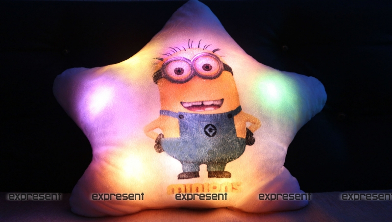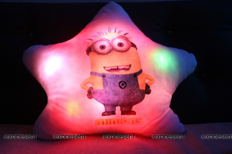 Любителям и поклонникам мультфильмов Миньоны и Гадкий я посвящается такой приятный подарок. Светящаяся подушка в форме звезды и принтом миньона. Миньоны настолько полюбились детям, что сейчас появляетя все больше и больше вещей с любимыми героями, даже аттракционы, по этому представляем вашему вниманию светящуюся подушку с изображением миньона.