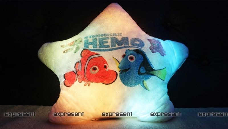 «В поисках Немо» (Finding Nemo) – добрый детский анимационный фильм. У многих это мультик детства, у некоторых заиграет ностальгия, а кто-то может быть только его посмотрел. В любом случае каждый фанат мультика В поисках Немо оценит такой подарок - светящуюся подушку с главными героями Дори и Марлином.